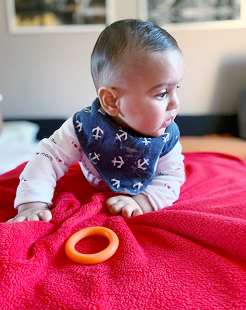 Podbradník Matteovi veľmi pristal, máme zrovna obdobie prerezávania zúbkov a veľmi dobrá savosť sa nám hodila. Malý slintá skoro nonstop a s podbradníkom som ho nemusela neustále prezliekať.